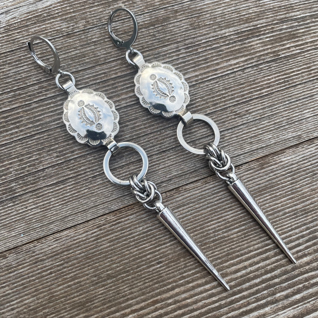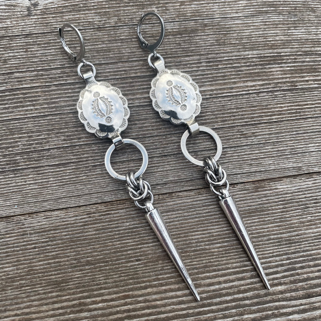 + These earrings are so cute! I've combined the silver tone concho pieces with stainless steel jump rings.